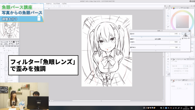 魚眼パース ※ ヘルプメニュー → バージョン情報で確認できます。 変形フィルタの 魚眼レンズ機能についてでよろしいでしょうか。 魚眼レンズフィルタは、 こちら のユーザーガイドから使い方をご覧いただけます。 お手数ですが、ご確認のほど魚眼レンズ パース クリスタ 魚眼レンズ パース クリスタ3 パースについて プロのイラストメイキング 筑波マサヒロ 3 By Clipstudioofficial Clip Studio Tips Drawing Cartoon Characters Posts Facebookそのパースあってる? 広角と望遠から考える背景講座 あなたはイラストを描いているとき、近いものと遠いものを意識できていますか? までではないでしょうか? 実は3つ目のポイントがあります。 それは 「遠いものほど奥行きがつぶれる」 ことです